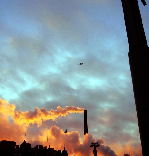 TAKOの製紙工場からの煙が、冷え込みで大きく立ち上がる。