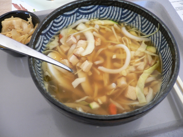 箸はあきらめて一緒に出てきたスプーンに切り替え。そしたら調子よく食べられる。どうもフィンランド人向けにスープ料理の様に作ってあるらしい。