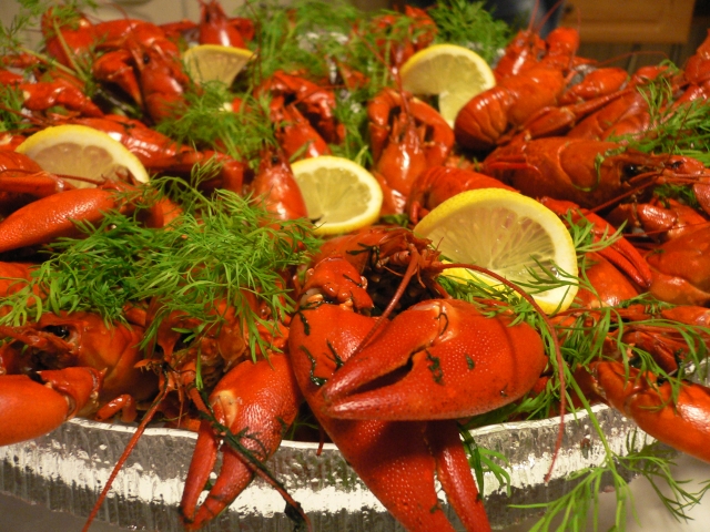 日本で、ザリガニはあまり食べるものという認識はないですが、フィンランドでは夏の終わりにだけ味わえる珍味。日本の感覚では、松茸が近いかな?値段もかなり高いです。