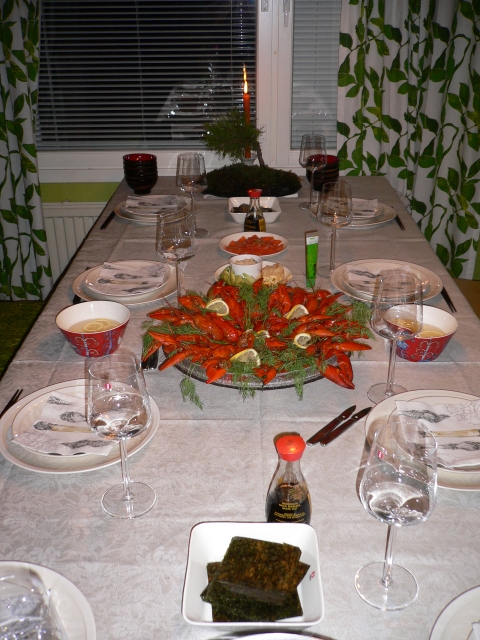 メニューは簡単に『手巻き寿司』の予定だったのですが、友達がRapu(ザリガニ)を沢山持ってきてくれたので、急遽Rapu juhla(ザリガニパーティー)に変更。