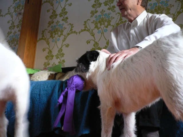 ↑プレゼント開ける前に記念写真・・・2頭+2匹そろった集合写真なんて無理無理・・・