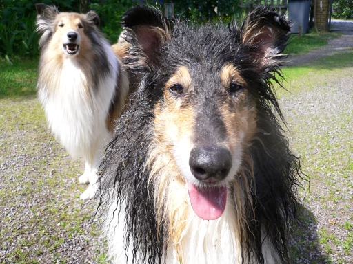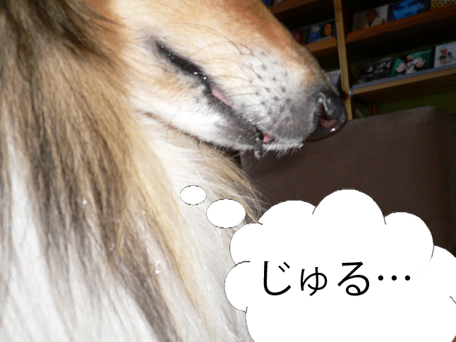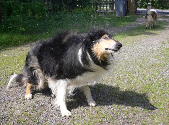 ピムは濡れないように逃げ回るだけ。リンミは大喜びです。