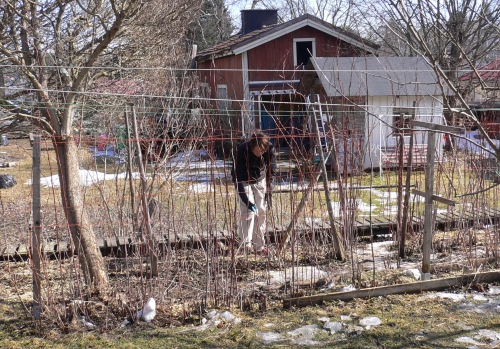 やることは沢山あります。りんごの木の剪定、バライチゴの剪定、切り落とした枝と庭のかたずけ、そして春の肥料撒き。