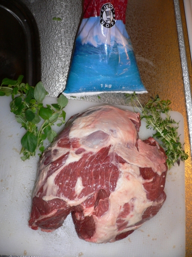 一段落着いたところで、遅めの昼食。復活祭の時の食事と言えばラム肉。復活祭の間は普通、牛や豚は食べません。で、今年は2.5Kgのラムを自分でローストしてみました。