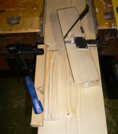 メス側ができたら、今度はオス側。鉋のガイドを付けて削ります。