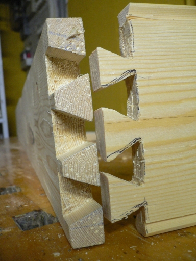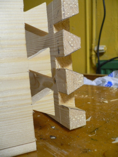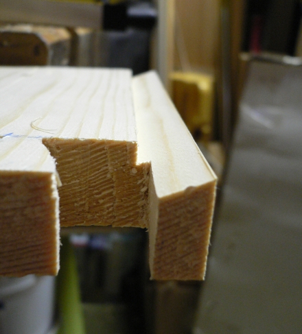 作業場の棚なのですが、ものすごく面倒な作りです。蟻溝というのをやったことがないので、練習がてらやってみようと、初めて見ました。