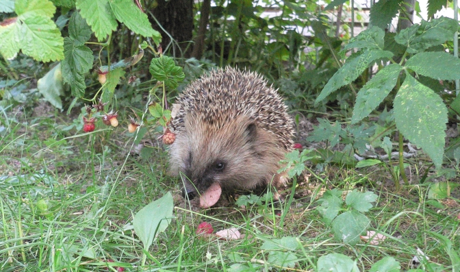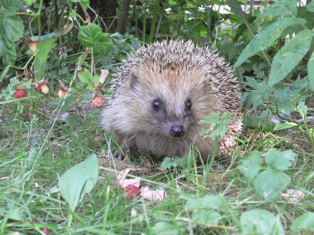 庭で夕飯を食べていたら、ラズベリーの茂みからひょっこり出てきて、